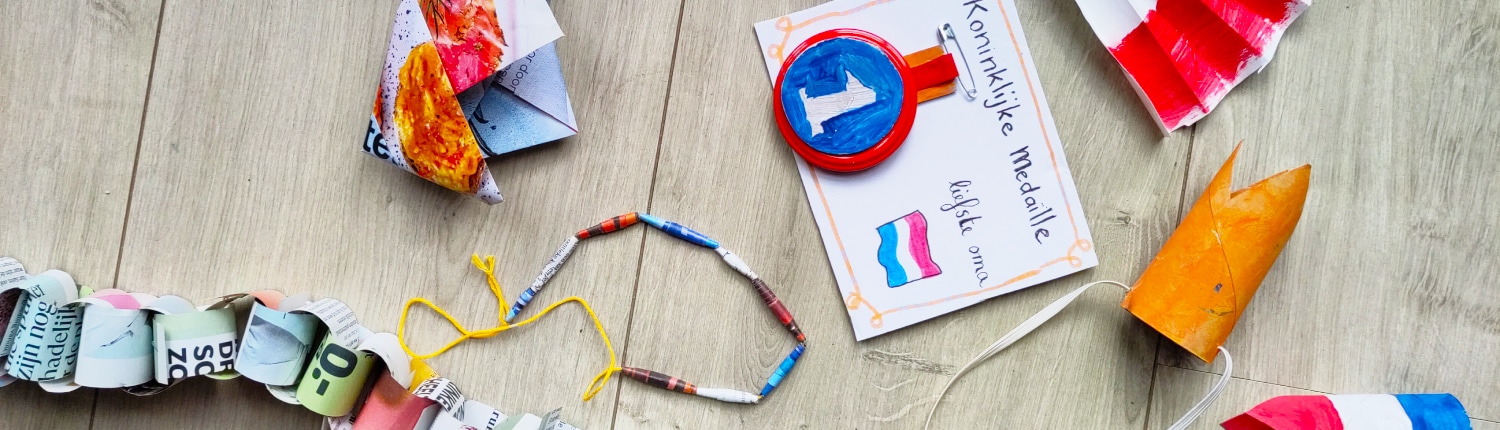 Gerecyclede papieren kralen voor Koningsdag