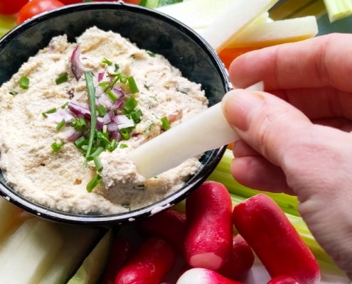 Wie houdt er niet van een lekker, gezond hapje tijdens een borrel, feestje of gewoon als tussendoortje? Met deze cashewdip met bieslook en rode ui heb je in een handomdraai een romige, smaakvolle dip die iedereen zal smaken. Het mooie? Hij is niet alleen lekker, maar ook nog eens vol goede voedingsstoffen en supermakkelijk te maken. Geen zuivel nodig, wel vol smaken!
