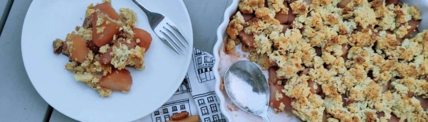 Deze kruimel ovenschotel met stoofperen en pecannoten is een heerlijk dessert. Serveer het na een feestelijke maaltijd bij Kerstmis, Pasen of een andere viering. Of trakteer jezelf doordeweeks met een heel nagerecht. Wat is jouw favoriete dessert met fruit?