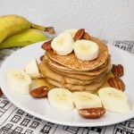 Serveer de bananenpannenkoekjes met stukjes banaan, walnoten of pecannoten, en ahornsiroop. Heb je pannenkoekjes over? Bewaar ze voor later als lunch of snack. Of vries ze tot 3 maanden in en warm ze even op in pan of magnetron.