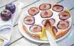 Vervolgens schenk je het beslag in de springvorm en duw er voorzichtig de halve pruimen in met de bolle kant beneden
