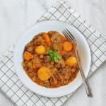 Doordat de groenten en champignons van dit stoofpotje gestoofd zijn in een Dubbel bier krijgt dit gerecht een heerlijk diep smaak.