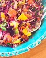 Voeg de dressing bij de salade en schep goed om. Laat de salade gerust nog 30 minuten staan voor serveren, zodat de smaken goed in de groenten kunnen trekken.